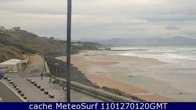 Descripción: Imágenes panorámicas de la Bahía de Biarritz desde la webcam situada en la "Rocher de la Vierge", una elevación rocosa que hace las veces de mirador. Biarritz (o Biarriz en francés) es un destino turístico muy popular entre surfistas, y cuenta con su propia competición anual.